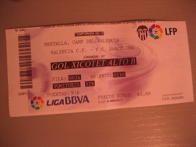 Dissabte a la nit serem a València. Ja tenim l'entrada del partit València - Barça.